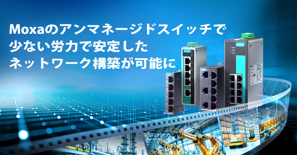 そこで役立つのがMoxaのアンマネージドスイッチです。Moxaのアンマネージドスイッチは、産業用の信頼性、容易なスケーラビリティと導入を実現するように設計されており、最小限の労力で安定したネットワークを構築可能です。
