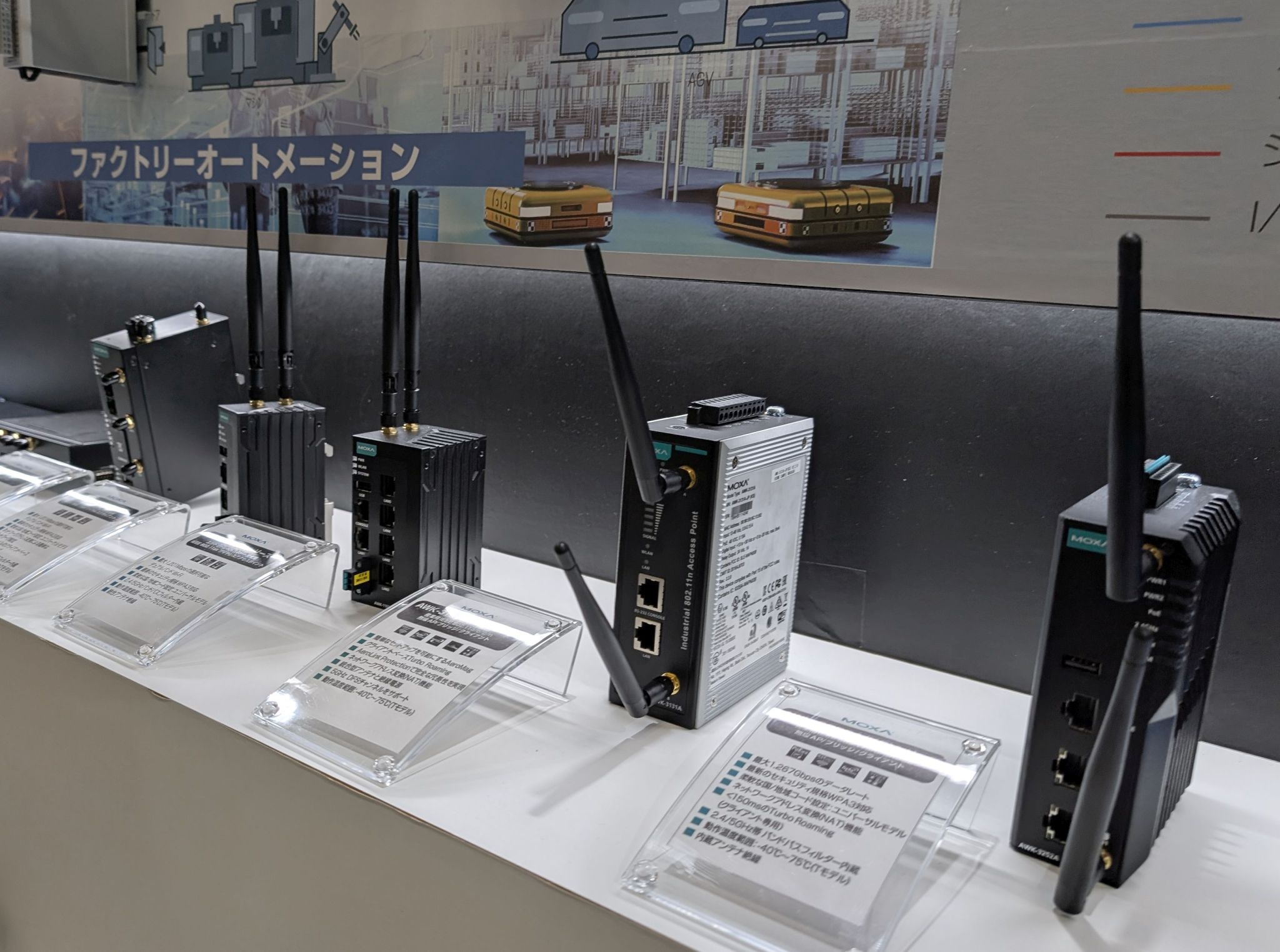 Wi-Fiの規格については、2.4GHz(802.11b/g/n/ac/ax)、5GHz(802.11a/n/ac/ax)の各種に対応しています。他にもWi-Fi6対応に対応するワイヤレスクライアントAWK-1161CやワイヤレスAP AWK-1165A、ローカル5GゲートウェイCCG-1500のソリューションも展示しました。Wi-Fi6やローカル5Gのような高帯域通信は、リアルタイムの遠隔操作や高解像度動画などを使うアプリケーション、帯域保証が必要な場面で有効な技術です。Moxaによる産業用ローカル5Gソリューションは、5Gソリューションのシステム構築を行っている三井情報株式会社様とも連携したご提案を進めております。