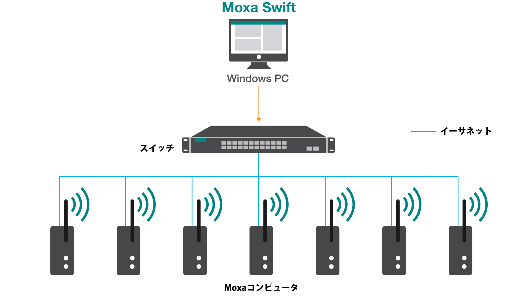 簡単導入 ・UbuntuやRaspberry Piのアプリケーションを簡単に移行できるDebianベースOS ・Moxa Connection Managerによるシンプルなネットワーク構成とセットアップ ・Moxa Swiftによるデバイスの簡単なバッチ処理 |
