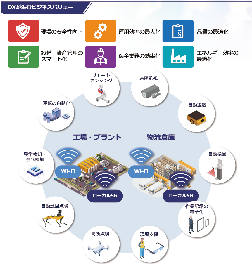 実際にデンカ大牟田工場でのローカル5G試験運用など、現場での導入が進んでおり、確かな実績も蓄積されています。段階的なDXの実現に向け、まずは無線インフラの整備からご検討いただくことをおすすめいたします。業務効率の向上と安全性の確保を同時に実現できる有効な第一歩となります。