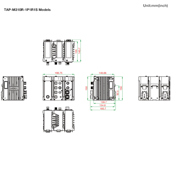 TAP-M310R-1P1R1Sモデル: 198.75 x 150 x 130 mm
