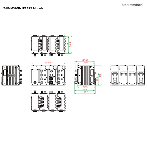 TAP-M310R-1P2R1Sモデル: 268.15 x 150 x 130 mm