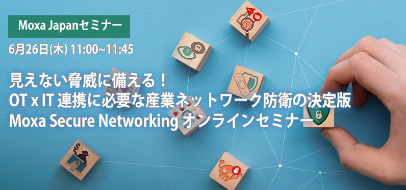 【Moxa Japanウェビナー】6月26日(木) 11:00~ 見えない脅威に備える! OT x IT 連携に必要な産業ネットワーク防衛の決定版 Moxa Secure Networking オンラインセミナー