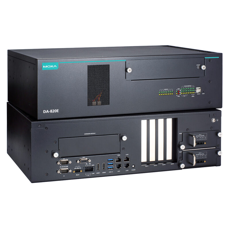 DA-820Eシリーズは、第13世代 Intel® Core™ i3/i5/i7プロセッサを搭載したハイパフォーマンス3Uラックマウント型産業用コンピュータです。3つのディスプレイポート (HDMI × 2, VGA × 1)、6つのUSBポート、4つのギガビットLANポート、2つの3-in-1 RS-232/422/485シリアルポート、6つのDIポート、2つのDOポート、4つの標準PCIe拡張スロット、1つの専用拡張スロットが付属しています。また、ホットスワップ対応の4つの2.5インチSSDスロットも装備されており、SSDスロット1と2でIntel® RST RAID 0/1機能をサポートし、ストレージのパフォーマンスと信頼性を強化します。