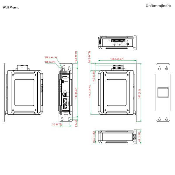 | 設置および取付 | DINレールマウンティング(DNV認証), ウォールマウンティング(DNV認証) |