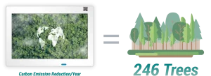 電子ペーパーの環境への影響は顕著です。500個の電子ペーパーディスプレイが排出するCO2eは年間0.009tです。一方、500台の液晶ディスプレイが排出するCO2eは年間2.965tです。この事実を踏まえると、電子ペーパーは246本の木を植えるのと同等の量のCO2排出量を削減していることになります。